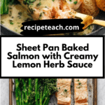 This Baked Salmon with Amazing Lemon Sauce recipe features tender salmon filets and roasted vegetables smothered in a rich and creamy lemon herb sauce. Roasted gold potatoes and broccoli complement the delicate salmon, while the buttery lemon sauce brings everything together for a vibrant, satisfying meal perfect for a family dinner or special occasion.