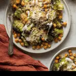 Once everything is roasted and toasted, transfer the broccoli and about half of the crispy chickpeas to a large mixing bowl. Toss them with 3 tablespoons of your chosen Caesar dressing until everything is beautifully coated. Sprinkle in the toasted breadcrumbs and grated parmesan cheese, then toss one more time. Don’t be shy here—mix until all those delicious textures and flavors are perfectly combined and your Broccoli Caesar Salad with Crispy Chickpeas and Toasted Breadcrumbs Recipe is ready to enjoy!