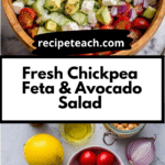 A fresh and vibrant Chickpea Feta and Avocado Salad combining creamy avocado, tangy feta cheese, and crisp vegetables tossed in a zesty lemon garlic dressing. Perfect for a quick, nutritious, and flavorful meal or side dish.
