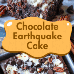 This rich and gooey Chocolate Earthquake Cake is a decadent dessert with layers of chocolate cake, coconut, pecans, melty chocolate chips, and a swirled cream cheese filling. Every bite is a delicious explosion of flavor—especially when served warm with vanilla ice cream.