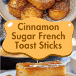 French toast you can eat with your fingers — warm, golden, and coated in cinnamon sugar like a doughnut. These cinnamon French toast sticks are a fun breakfast or brunch treat that both kids and adults will love. Crispy on the outside, soft on the inside, and perfect for dipping in maple syrup.