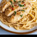 Creamy Lemon Chicken and Pasta is an elegant yet easy weeknight dinner featuring thin-sliced chicken in a luscious lemon cream sauce served over basil Parmesan pasta. It’s bright, rich, and packed with flavor in every bite.