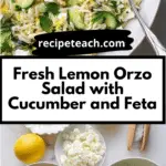 A fresh and vibrant lemony orzo pasta salad featuring tender orzo, crisp cucumber, tangy feta, and fresh herbs, dressed with lemon juice and olive oil. This easy and quick salad is perfect as a light lunch or a flavorful side dish, ideal for warm weather. Vegetarian and gluten-free friendly.