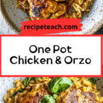 This one pot chicken and orzo is creamy, flavorful, and satisfying. With juicy chicken pieces, creamy sauce, fresh spinach, tangy sun‑dried tomatoes, and a bright lemon finish, it’s a full meal ready in about 40 minutes — minimal cleanup, maximum flavor.