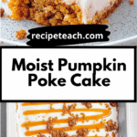 This cake is ridiculously easy to make yet delivers impressive flavor and texture. The base is a soft pumpkin-spiced cake made from a box mix and pumpkin purée, which bakes up moist and fluffy. After baking, it’s poked and drenched in sweetened condensed milk for an ultra-moist texture, then topped with whipped cream, caramel sauce, and crunchy toffee bits. Every bite is a combination of creamy, sweet, and crunchy—a true crowd-pleaser.