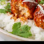 10. Serve: Serve the glazed salmon meatballs over cooked rice and garnish with chopped green onions and cilantro for a fresh finish.