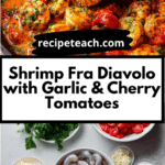 Add the halved cherry tomatoes, vegetable broth, and a generous splash of fresh lemon juice to the skillet. Let everything simmer together for around 3 minutes, until the shrimp is fully cooked and the tomatoes have softened beautifully. This creates the vibrant, saucy quality that defines Shrimp Fra Diavolo Recipe.