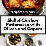 Consider serving your Skillet Chicken Puttanesca Recipe family-style straight from the pan to emphasize rustic appeal and encourage sharing. Alternatively, plate individual portions over cooked pasta or a bed of sautéed greens for an elegant twist that elevates the meal’s presentation.
