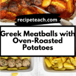 - Add Meatballs and Continue Baking: After the 30 minutes initial baking, arrange the soutzoukakia meatballs on top of the par-cooked potatoes. Return the dish to the oven and bake for an additional 50-60 minutes, or until the potatoes are fork-tender and the meatballs are fully cooked.