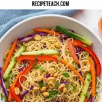 Rice vermicelli or thin rice noodles are ideal because they absorb the dressing beautifully and stay tender but not mushy. Avoid thicker noodles like udon since they’ll overwhelm the delicate flavors and textures.