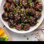- Serve: Remove the meatballs from the oven and serve hot. Garnish with sliced green onions, sesame seeds, and sliced or chopped Thai chiles for extra flavor and heat. Drizzle with any remaining sauce as desired.