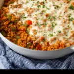 This hearty stuffed pepper casserole combines flavorful chicken sausage, colorful bell peppers, and a zesty tomato salsa with tender rice, all topped with melted mozzarella cheese. It’s an easy, one-pan meal perfect for a satisfying weeknight dinner.