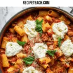 Take the skillet off the heat and dollop the ricotta cheese on top, folding it gently into the hot pasta to add a luscious creaminess. Finally, sprinkle the remaining mozzarella evenly over the surface. Cover the pan or place it under a broiler just long enough for the cheese to bubble and turn golden—this melting step completes the authentic lasagna feel.
