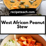 This West African Peanut Stew is a hearty and comforting vegan dish featuring sweet potatoes, a creamy peanut butter base, and vibrant flavors from garlic, ginger, and chili peppers. It’s a nutritious, easy-to-make one-pot meal that can be served with grains like rice or quinoa and garnished with fresh cilantro and peanuts.