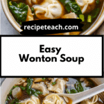 This easy homemade Wonton Soup is a comforting and flavorful dish featuring tender wontons, baby bok choy, mushrooms, and a savory broth seasoned with garlic, ginger, soy sauce, and sesame oil. Better than takeout and ready in just 15 minutes!